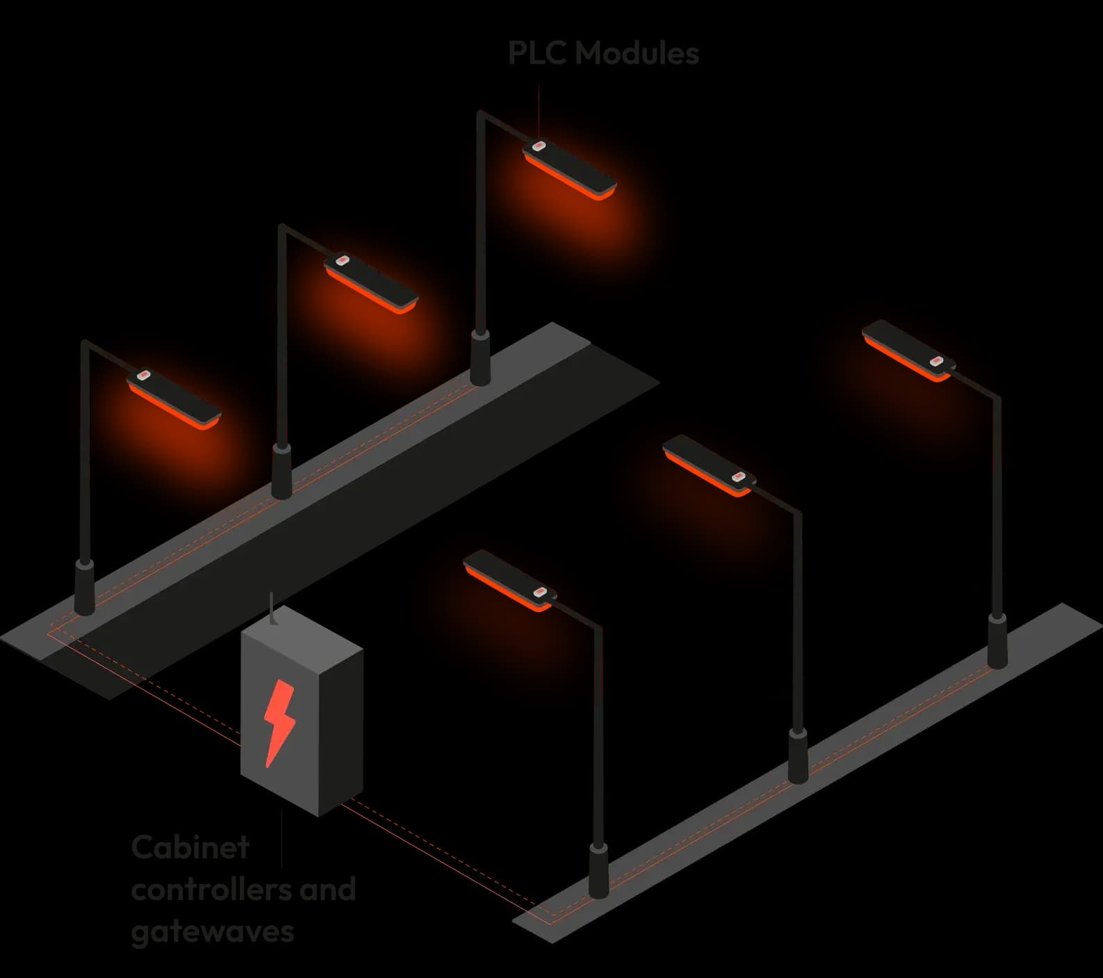 Using LiteLINE technology, each luminaire is equipped with a PLC node that enables remote switching, dimming, and diagnostics.